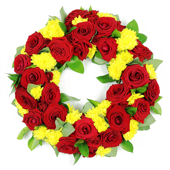 Available in Original (30 cm), Deluxe (36 cm) and Grand (41 cm) sizes, this sympathy wreath is ideal for funerals, memorial services or as a respectful condolence gift. Each arrangement is created with care using fresh, premium blooms, with natural guard petals left on the roses to protect their inner beauty during delivery.