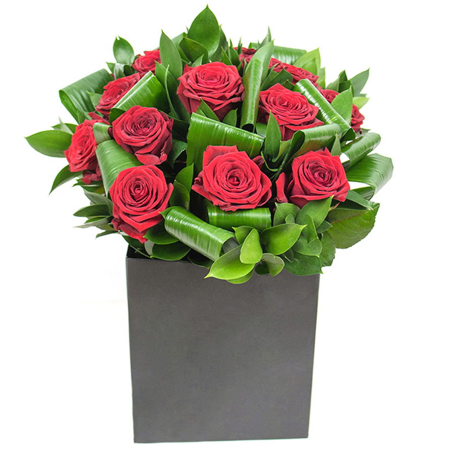 The rich red roses and elegant leaves made this arrangement perfect for any occasion. The flowers remained fresh and vibrant.